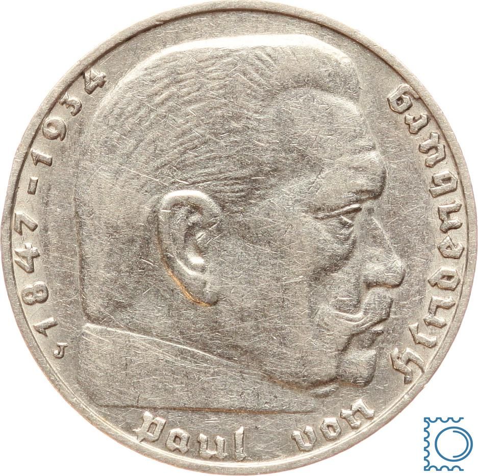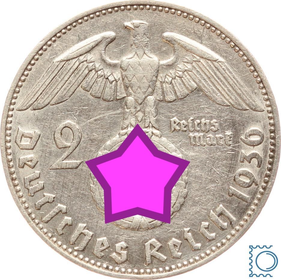 2 RM Reichsmark 1936 J, Hindenburg, J.366, Silber - Selten!