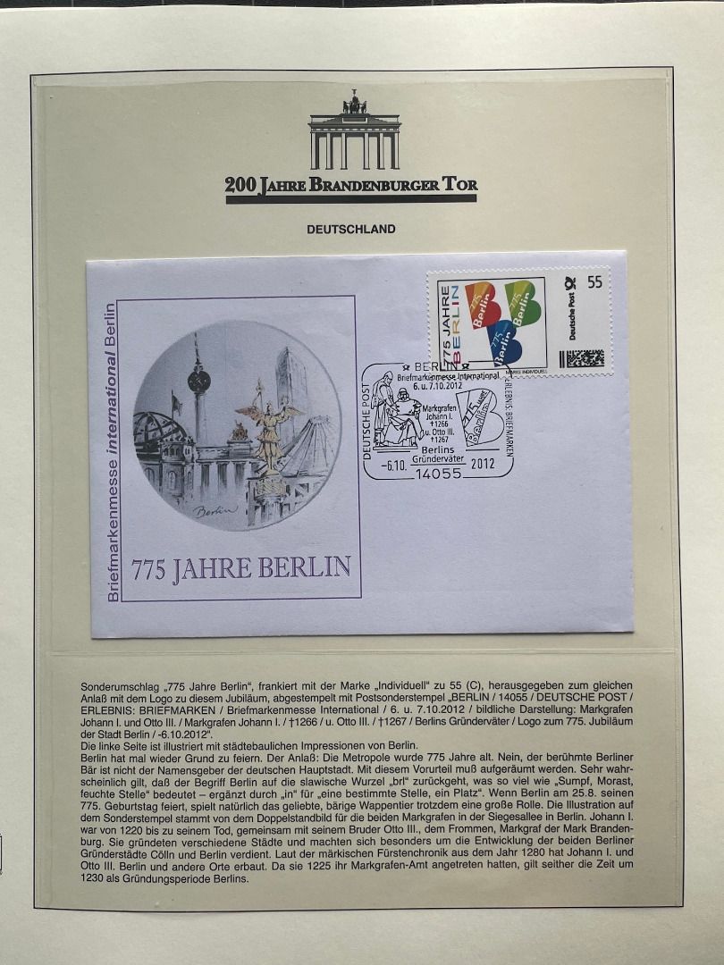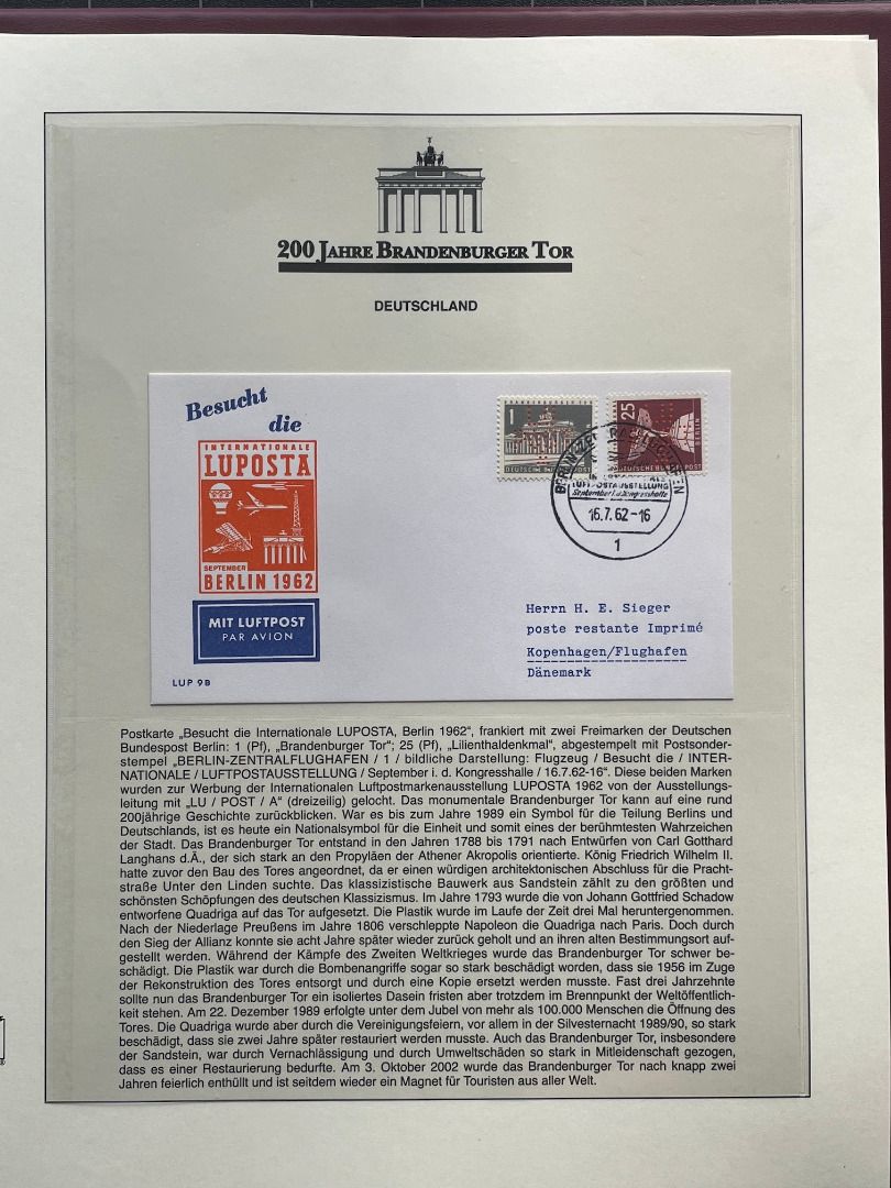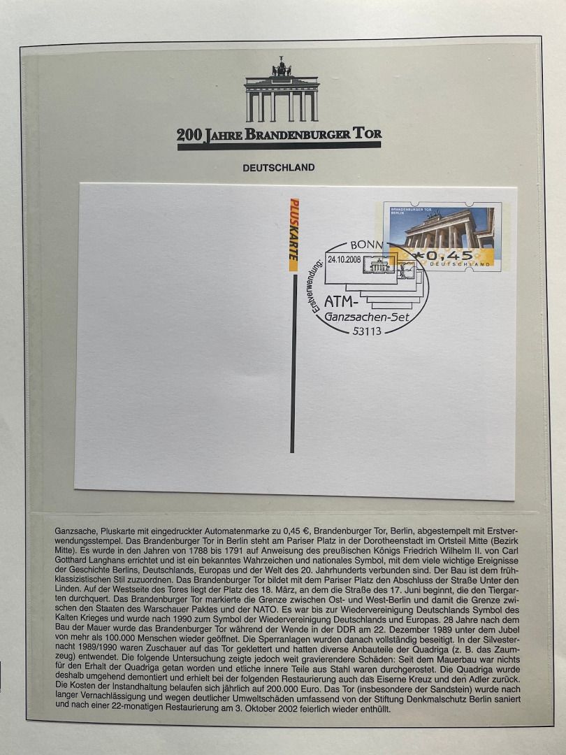 Umfangreiche Abosammlung 200 Jahre Brandenburger Tor in Lindner Ringbinder auf 70 Seiten mit Motiven aus aller Welt!