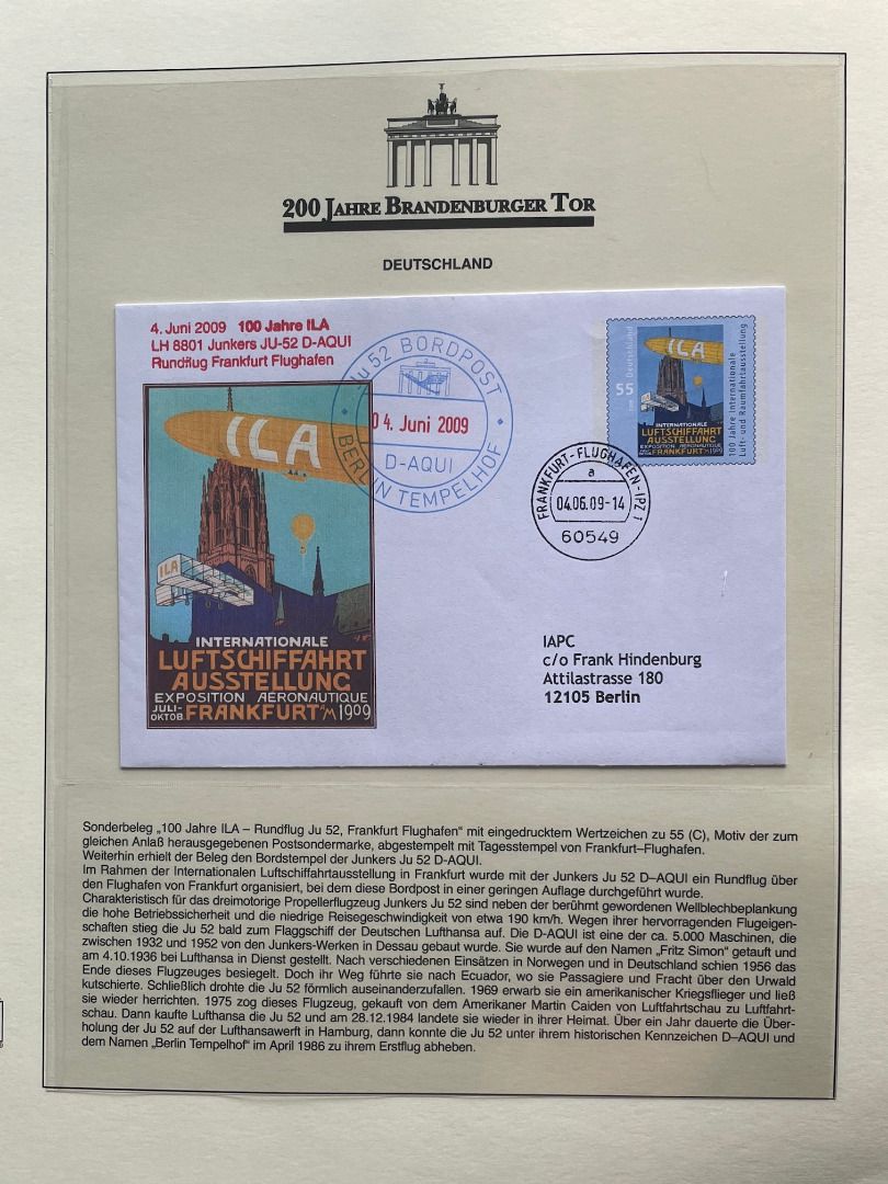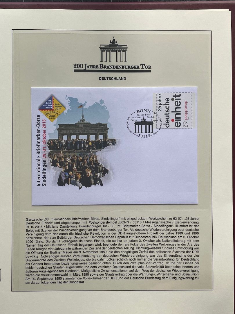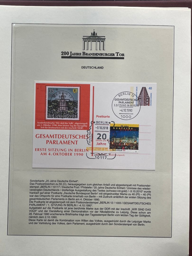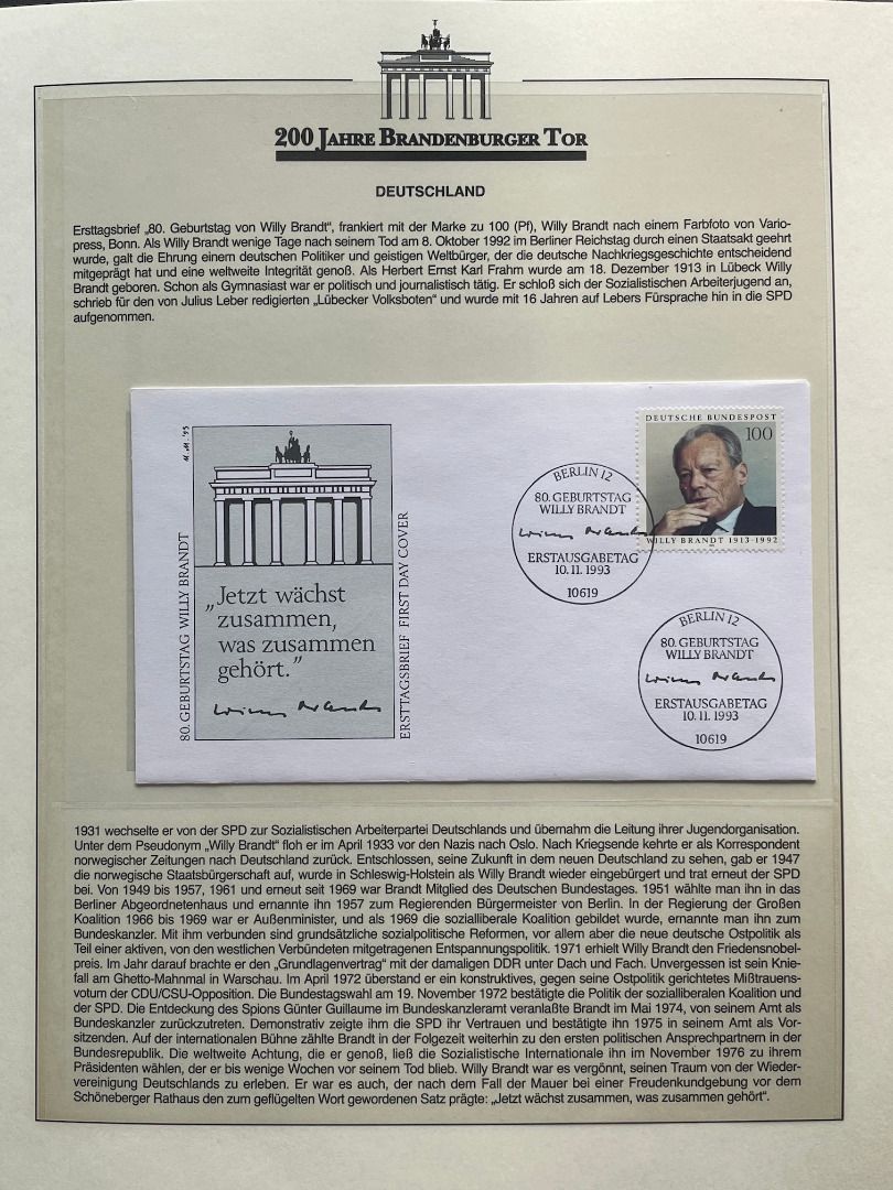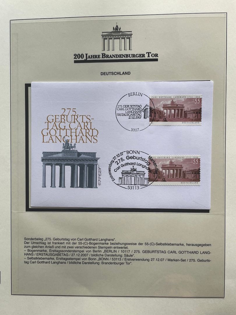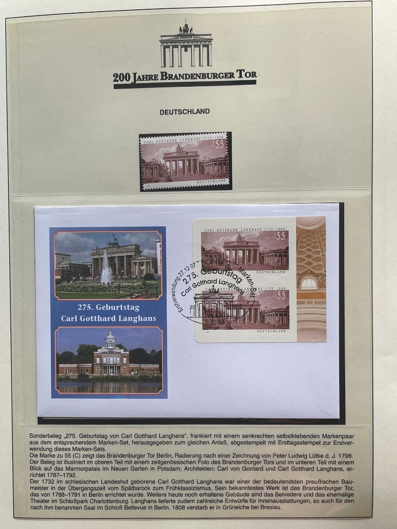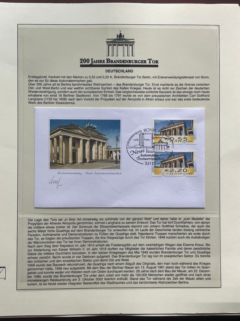 200 JAHRE Brandenburger Tor FDC Motivsammlung - in Lindner Ringbindern