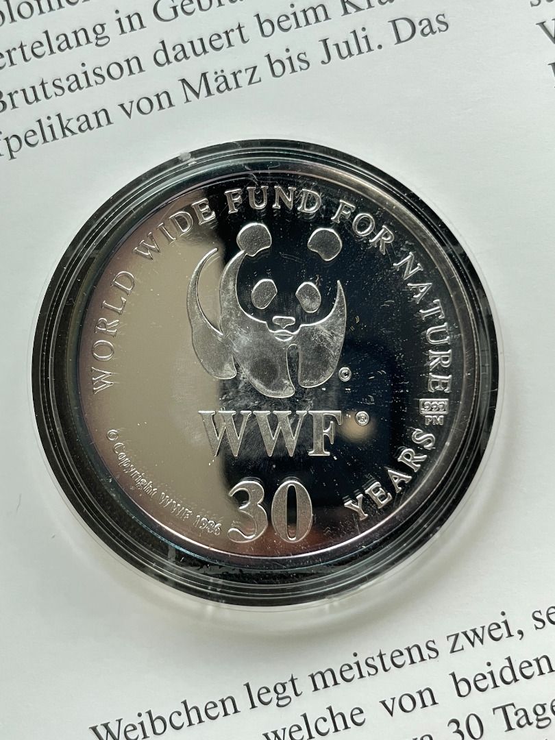 30 JAHRE WWF - Krauskopfpelikan 1993 Pelecantus crispus - 999 SILBER / 20g