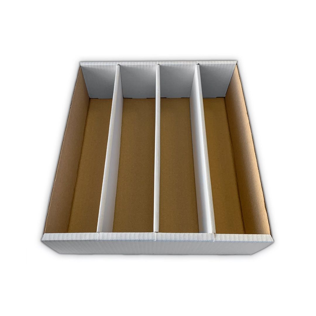 Arkero-G Pappkarton mit 4 Reihen als Sortierkiste, Aufbewahrungsbox bzw. Bulkbox für verschiedenste Sammelkarten. Z.b. Pokemon, One Piece, Magic The Gathering, YuGiOh, Lorcana, Naruto Mythos, Dragon Ball, Weiß Schwarz, Riftbound, Star Wars Unlimited & Digimon