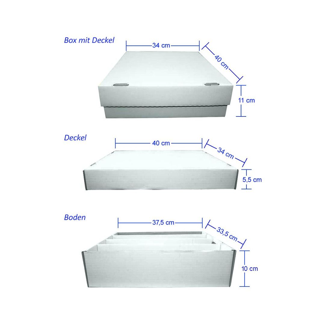 Die Boxen haben einen Deckel und sind stapelbar, so lassen sich problemlos zigtausend Karten auf kleinstem Raum verstauen, ideal für große Mengen an Commons und Uncommons!