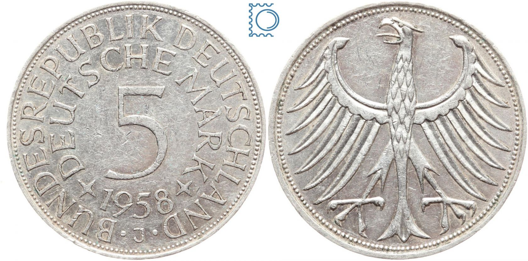 5 Deutsche Mark 1958 J - Silberadler 1951-1974 - Jaeger 387