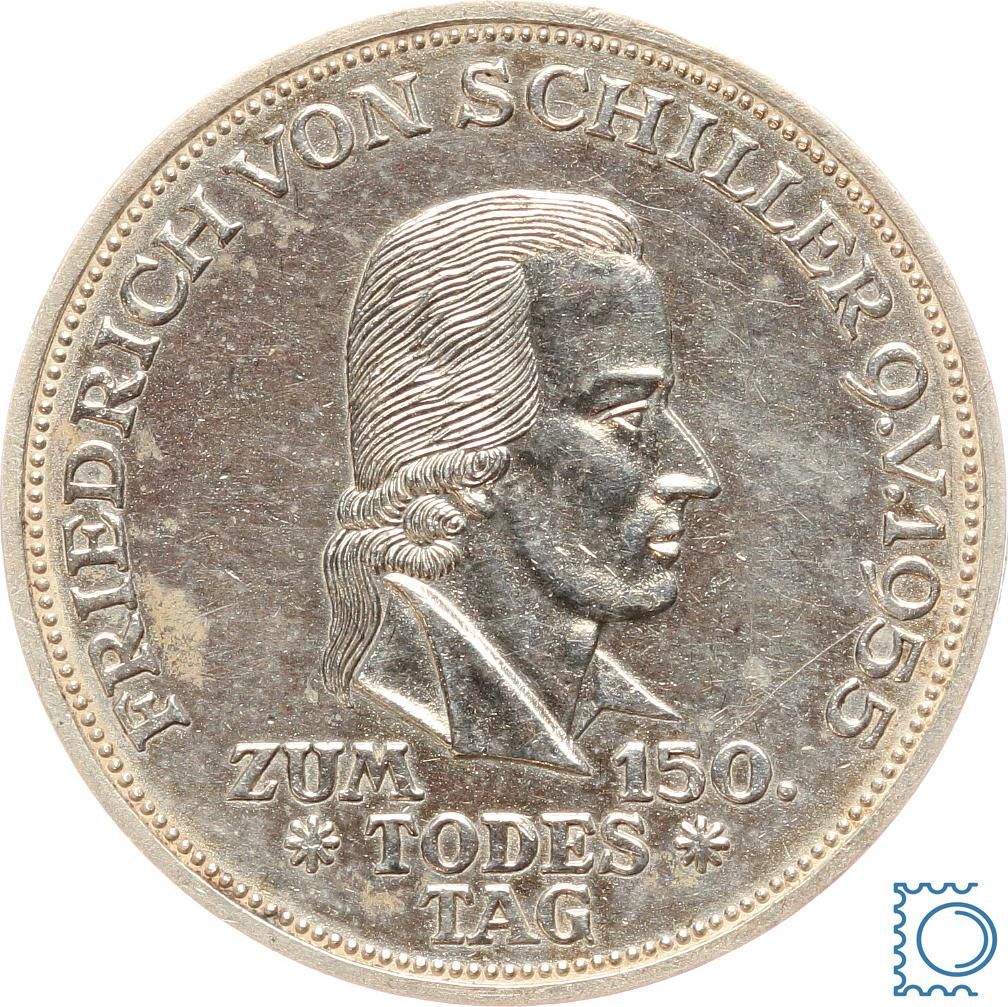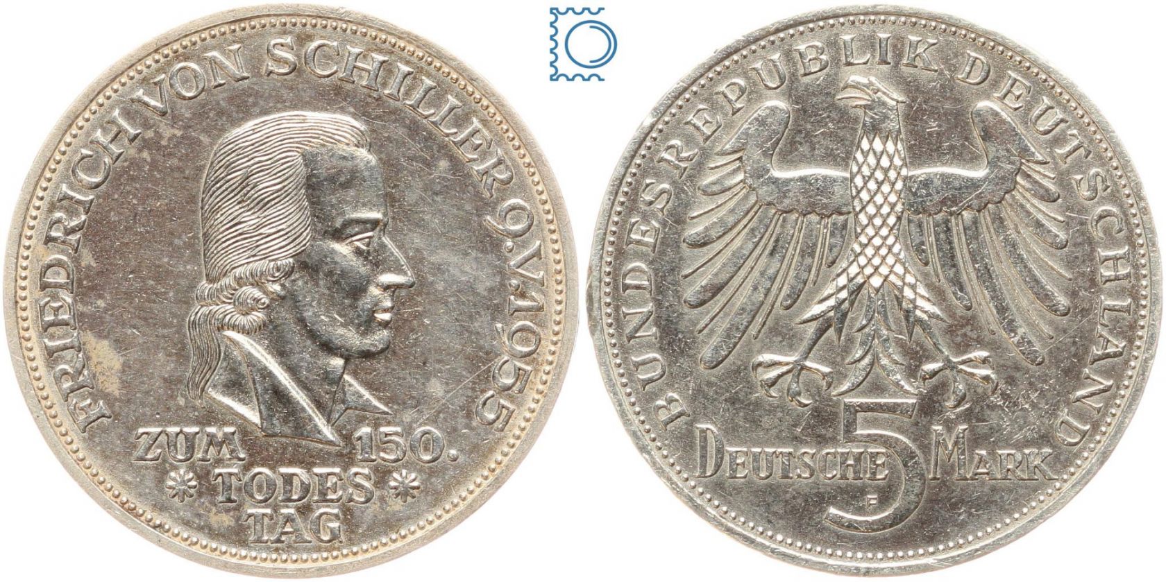 5 DM - Friedrich von Schiller 1955 F - vorzüglich! - Silber Gedenkmünze - J. 389