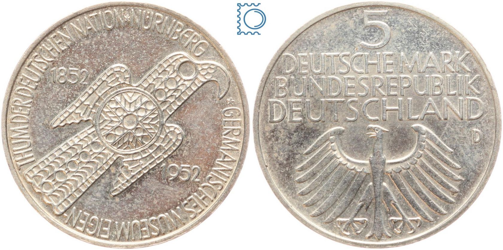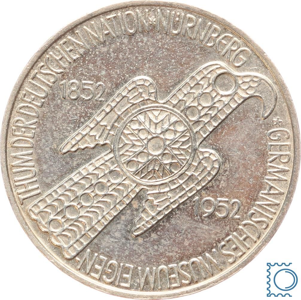 5 DM Germanisches Museum 1952 D - Silber Gedenkmünze - Jäger 388