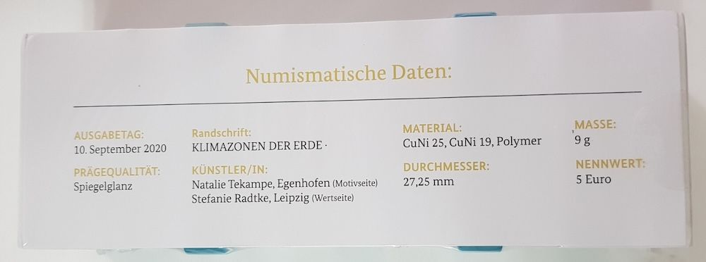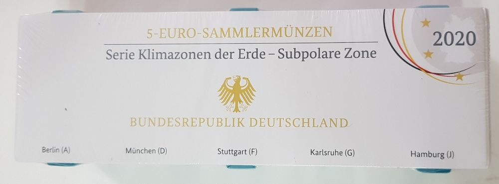 5 x 5 Euro Münze 2020 Subpolare Zone PP Spiegelglanz ADFGJ OVP