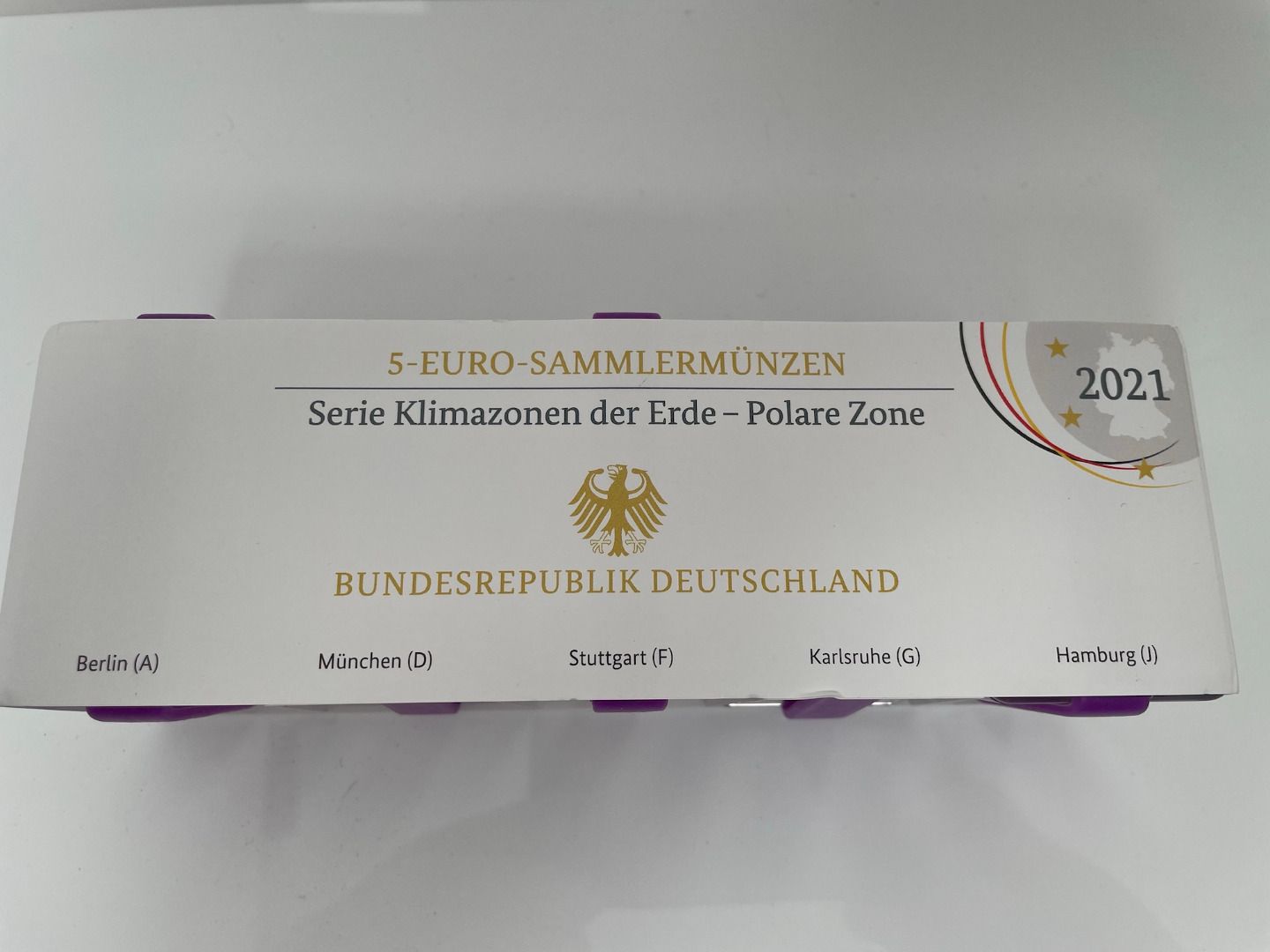 5 x 5 Euro Münze 2021 Polare Zone PP Spiegelglanz ADFGJ - Klimazonen der Erde