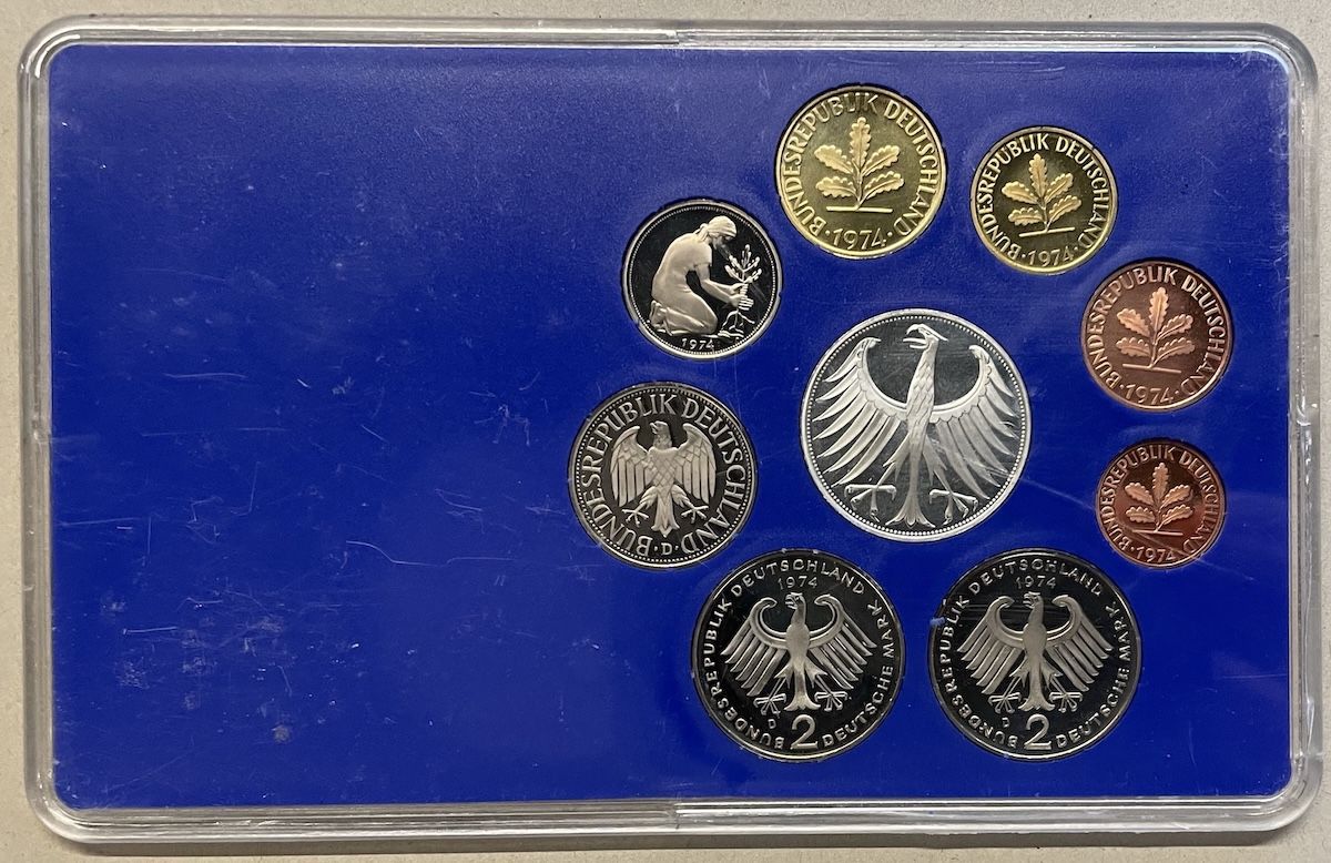 5x BRD KMS 1974 D - PP 1 Pf. - 5 Mark Silberadler Polierte Platte DM OVP