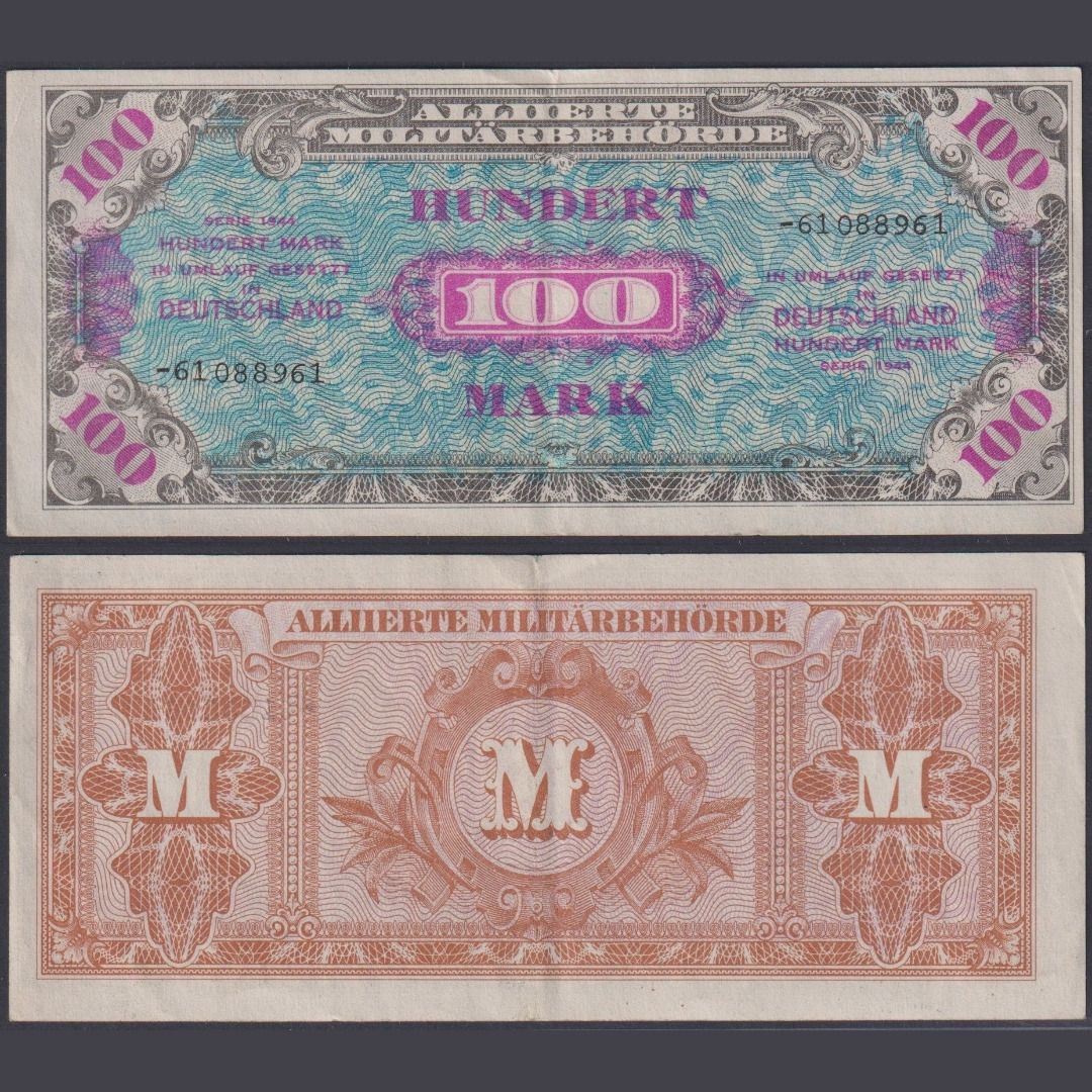Alliierte Militärbehörde 100 Mark 1944 Ro. 206d P#197d– UdSSR Druck KN 8-Stellig
