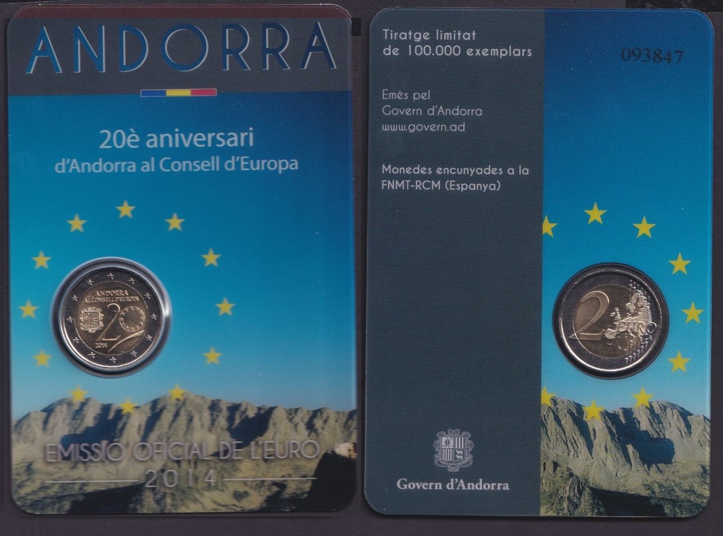 ANDORRA 2 Euro 2014 - 20 Jahre Europarat - original OVP in Coincard