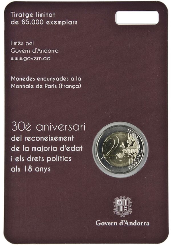 ANDORRA 2 Euro 2015 - 30 Jahre Volljährigkeit - original OVP in Coincard