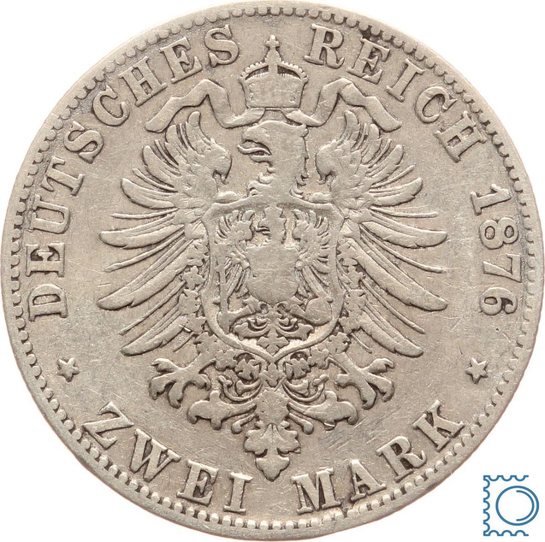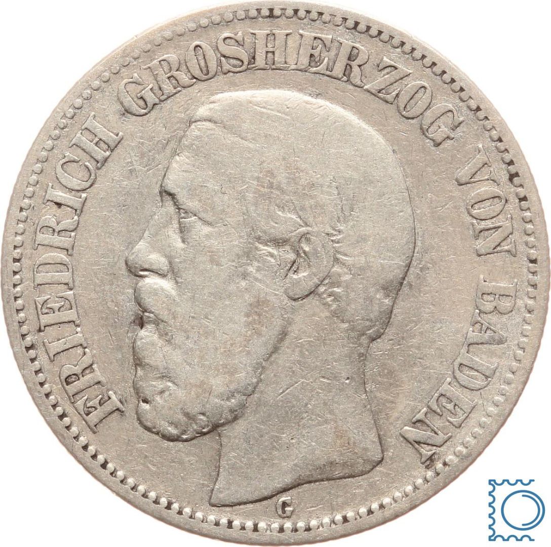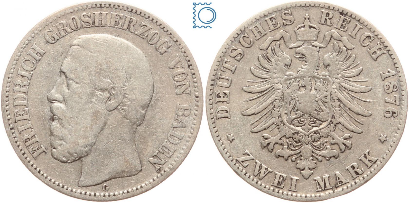 BADEN 2 Mark 1876 G, Friedrich I. (Friedrich I. 1856-1907), J.26