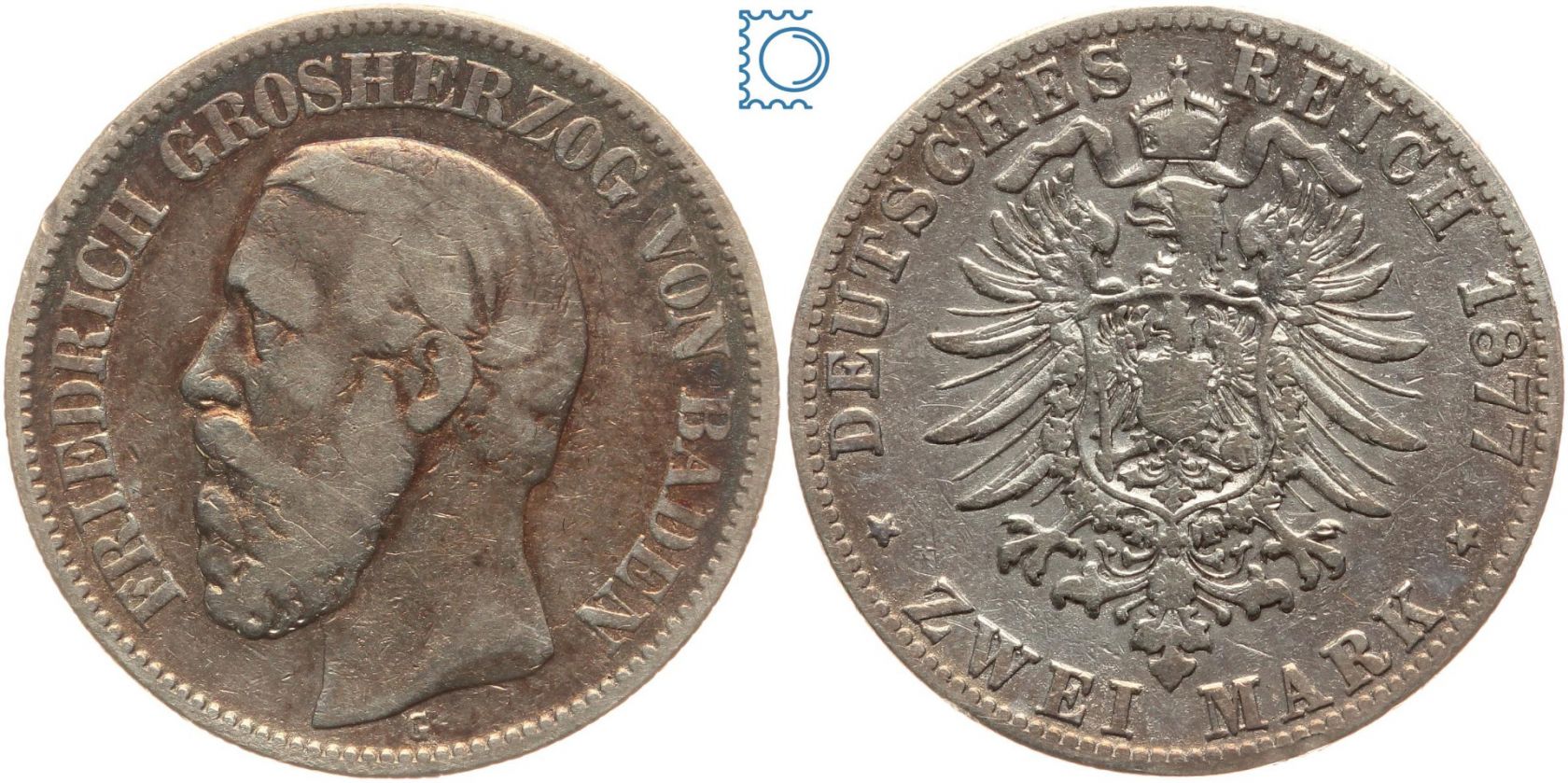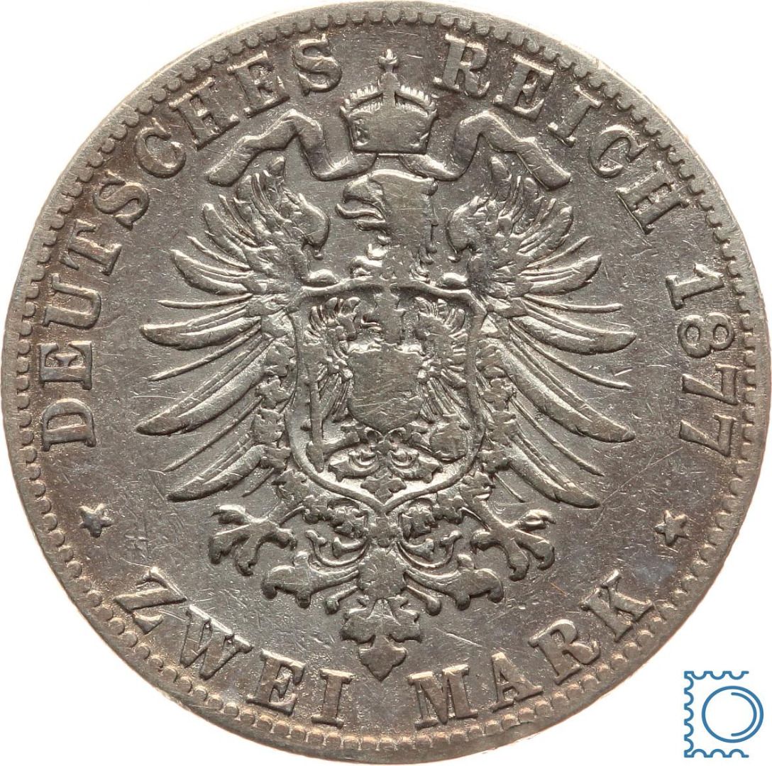 BADEN 2 Mark 1877 G, Friedrich I. (Friedrich I. 1856-1907), J.26