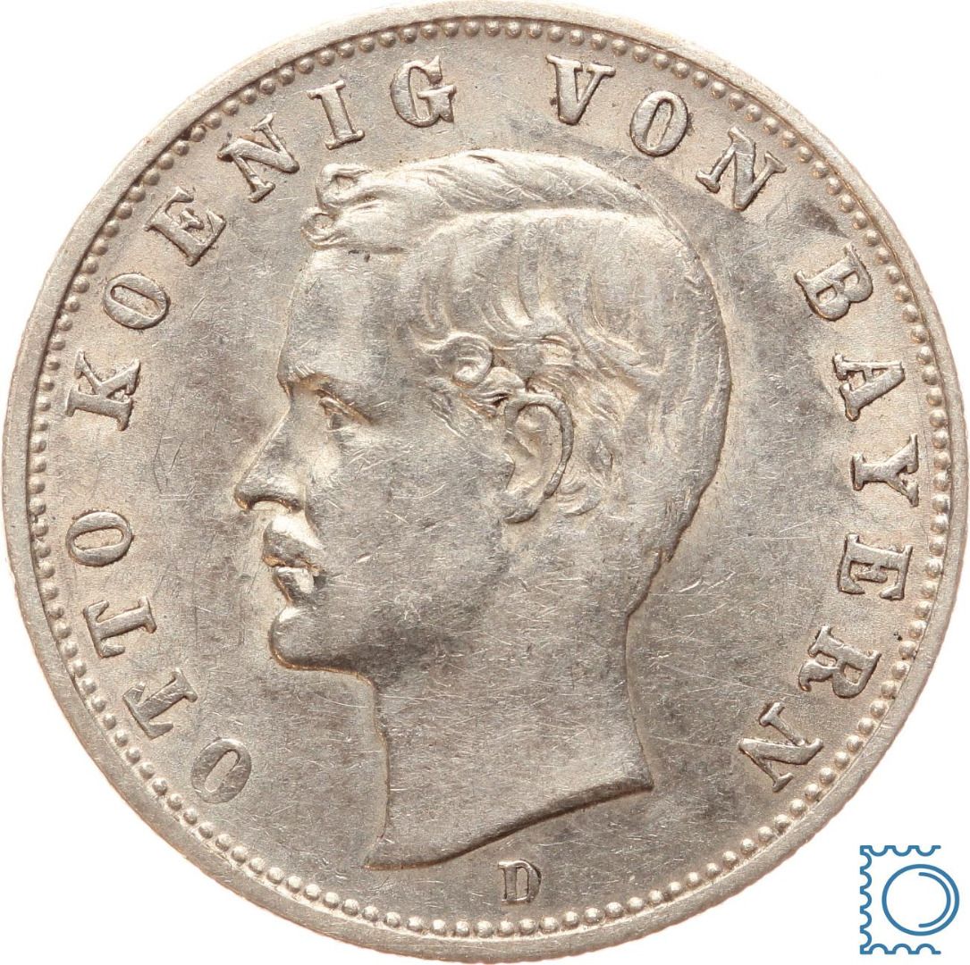 BAYERN, 3 Mark, König Otto, 1913 D, J.47, Silber