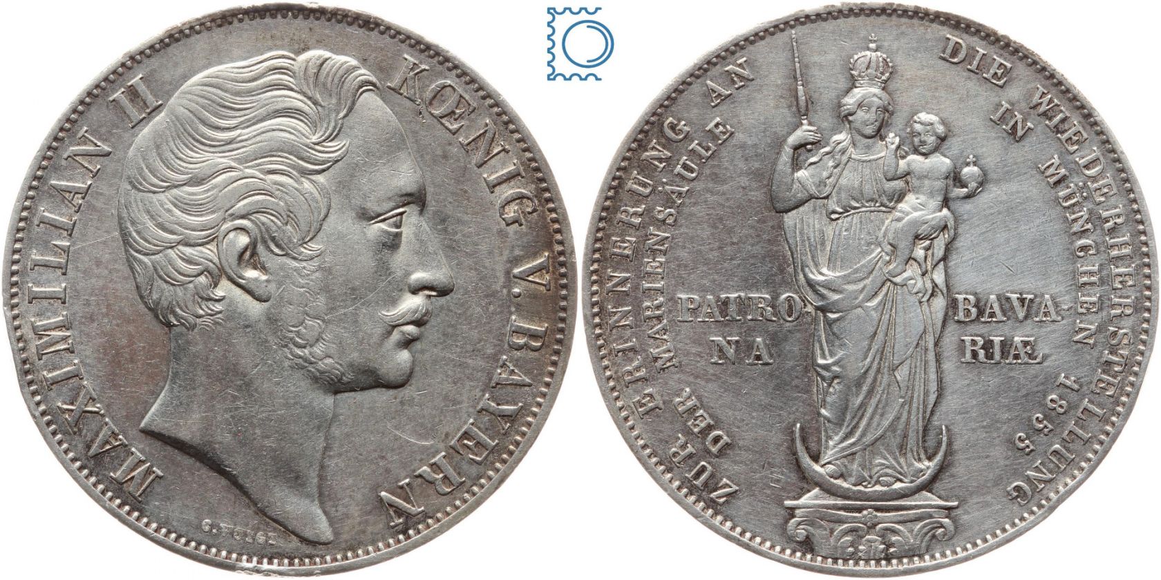 Bayern Doppelgulden 1855 - Maximilian II - Wiederherstellung der Mariensäule