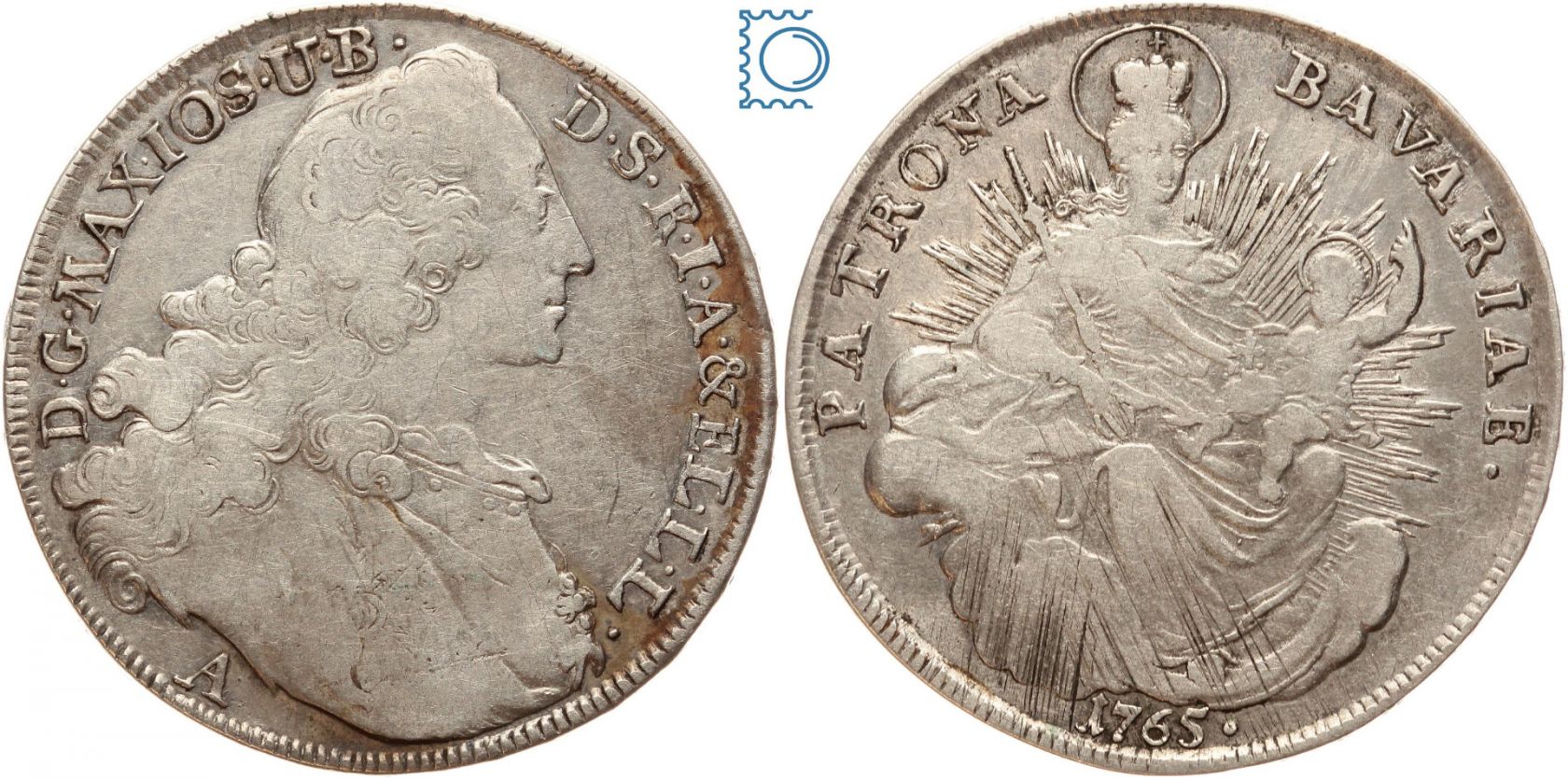 Bayern, Maximilian III. Joseph, 1 Taler 1765 A, Madonnentaler, Silber