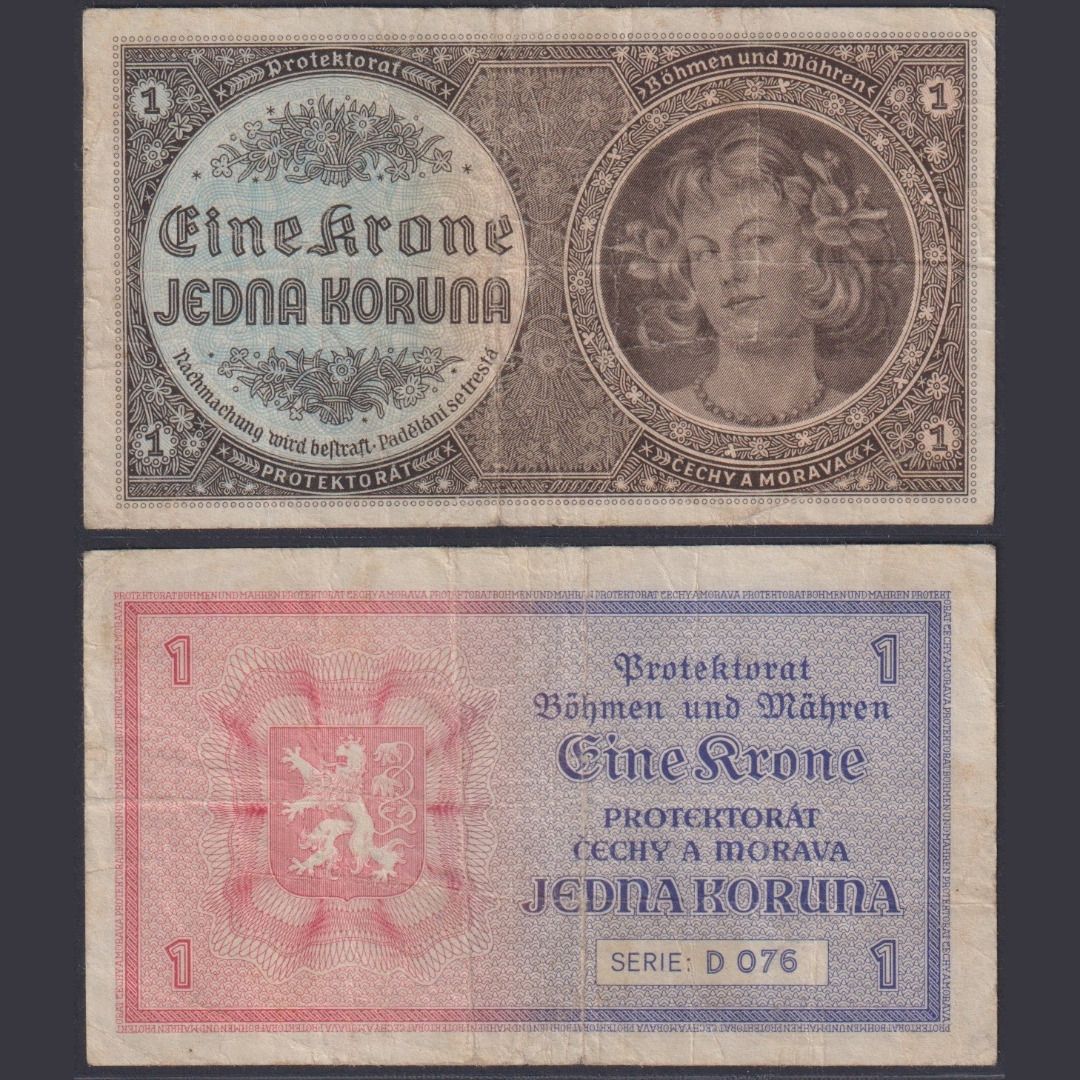 Böhmen und Mähren 1 Krone ZWK-9a Ro.558a P#3 Besatzungsausgaben