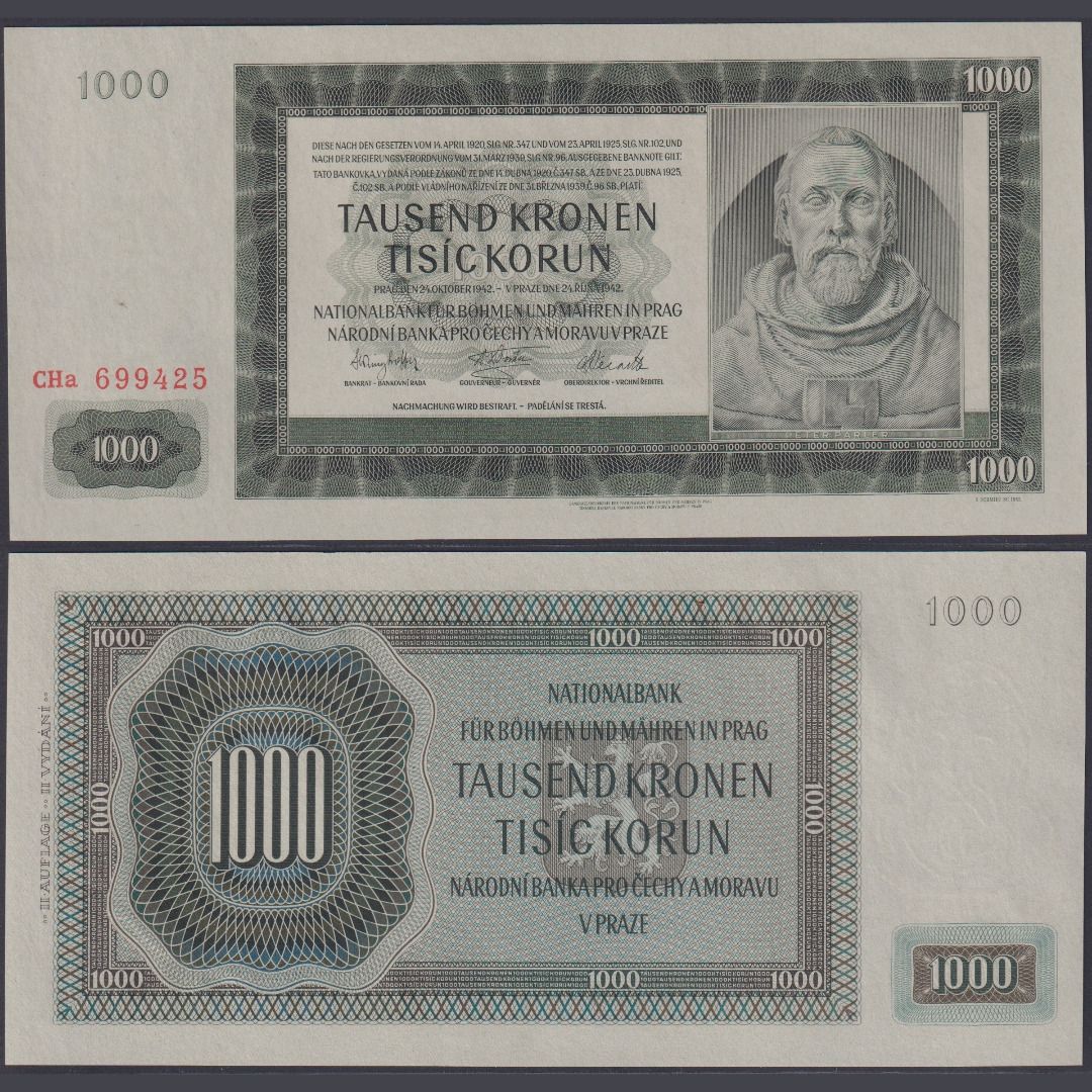 Böhmen und Mähren 1000 Kronen ZWK-20a Ro.566d P#14 Besatzungsausgaben