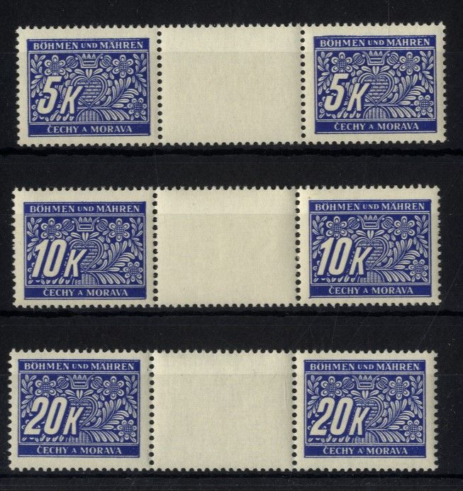Böhmen und Mähren, Portomarken P 12-14 Zwischensteg postfrisch Paare