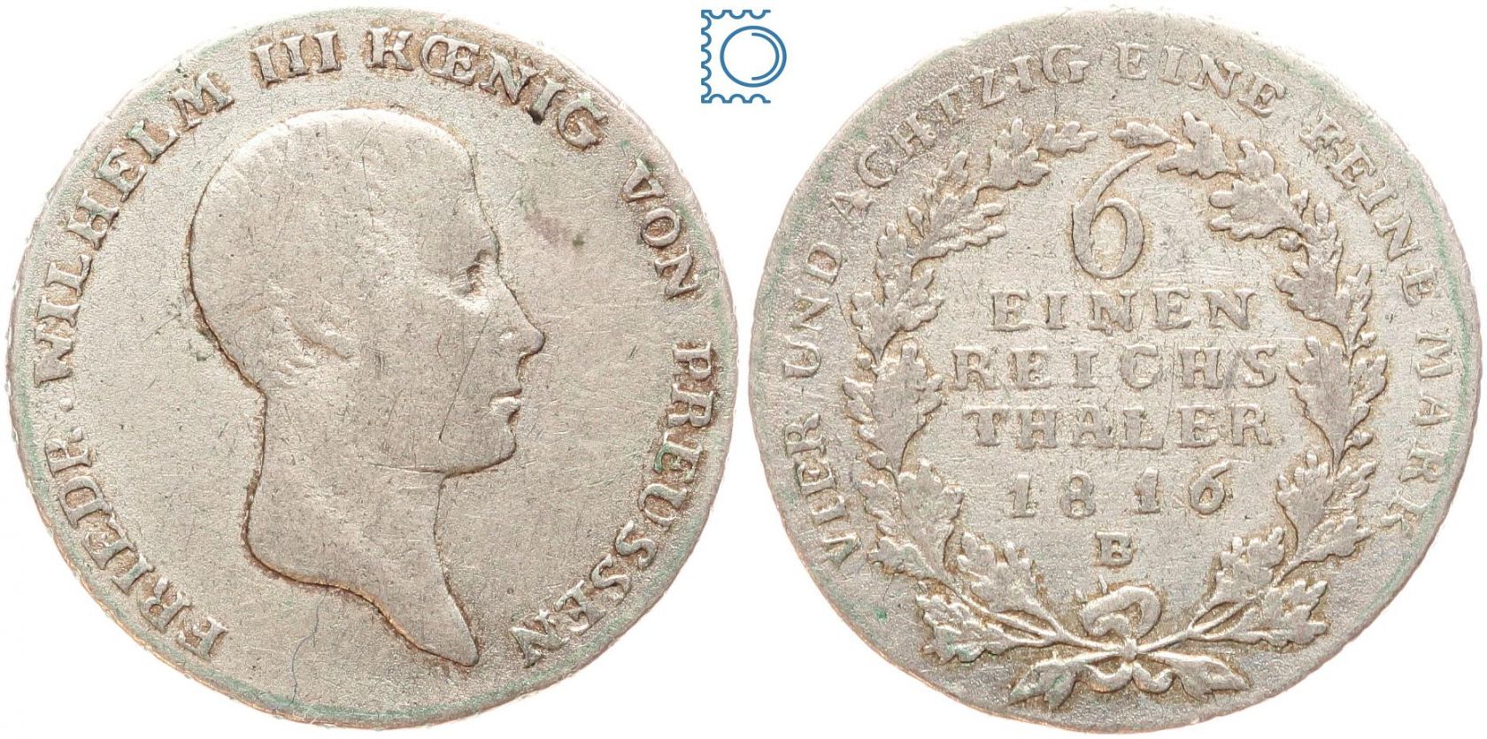 Brandenburg-Preußen, 1/6 Taler 1816 B, Friedrich Wilhelm III. (1797–1840)