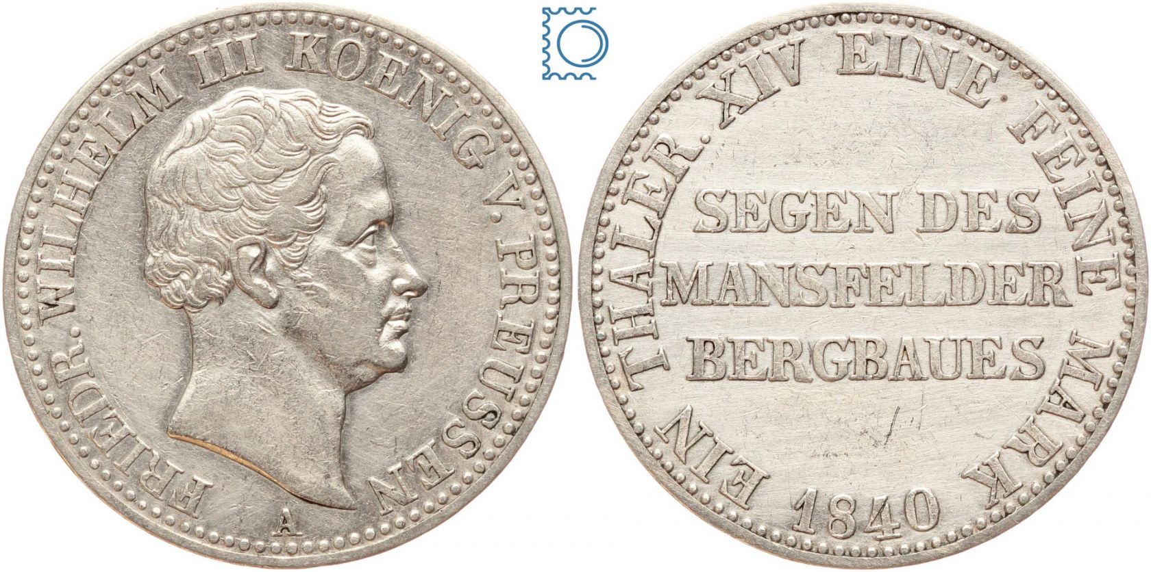 Brandenburg-Preussen Taler 1840 A - Friedrich Wilhelm IV. - Ausbeutetaler Mansfelder Bergbau