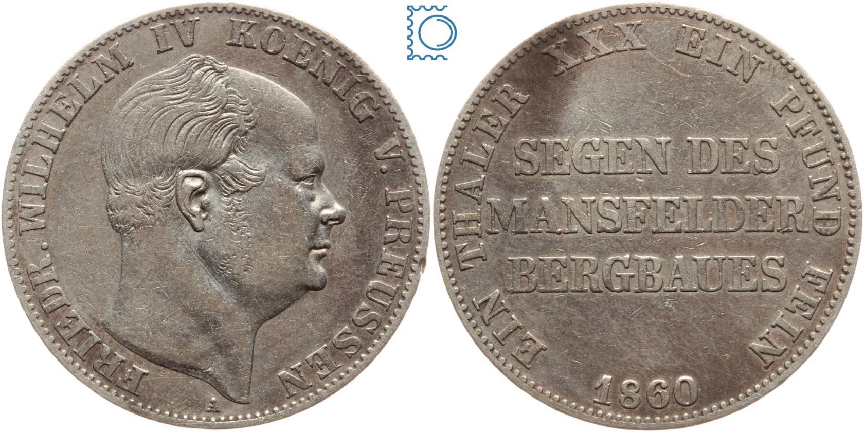 Brandenburg-Preussen Taler 1860 A - Friedrich Wilhelm IV. - Ausbeutetaler Mansfelder Bergbau