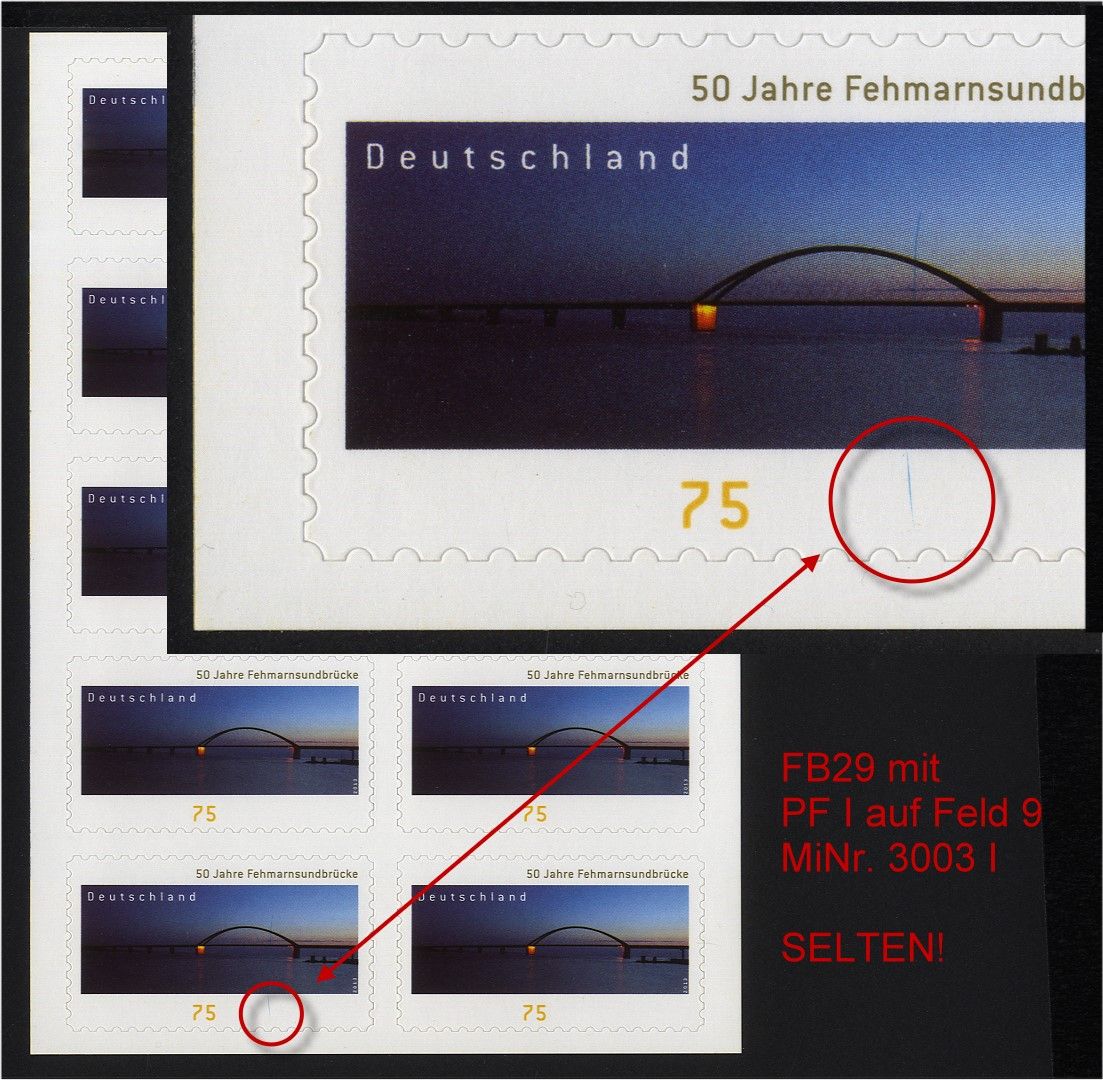 Bund Folienblatt 29 mit PF PLF I postfrisch - Plattenfehler 3003 I