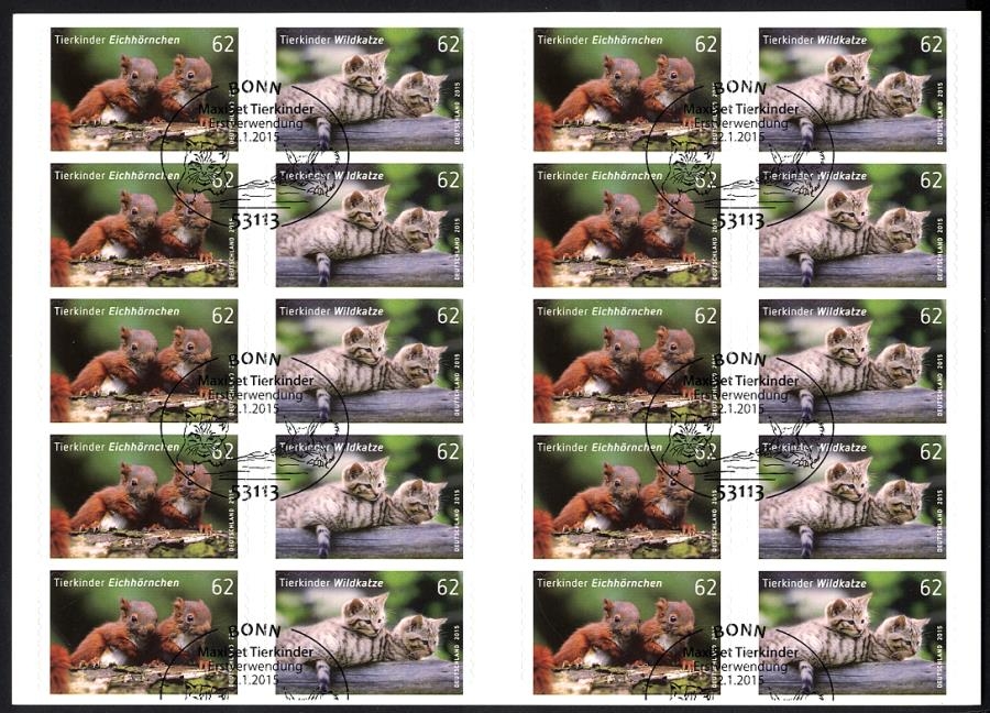 Bund, Folienblatt 44 gestempelt ESST - 3129-3130 - Eichhörnchen Wildkatze