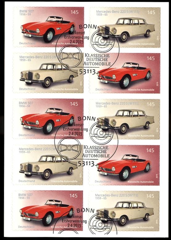 Bund, Folienblatt 47 gestempelt ESST - 3147-3148 - BMW 507, Mercedes Benz 220S