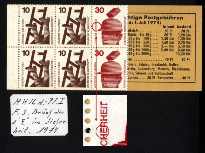 Bund Markenheftchen MH 16 d PF I PLF Plattenfehler postfrisch