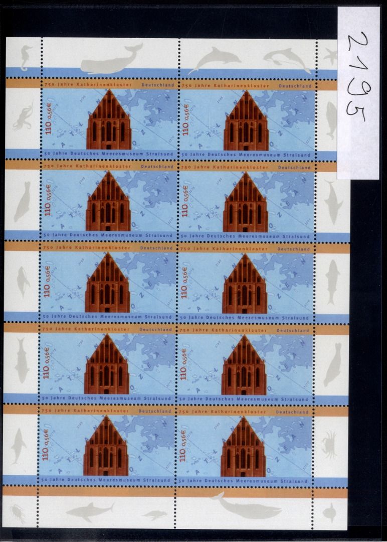 Bund, Michel Nr. 2195 Zehnerbogen postfrisch - Katharinenkloster