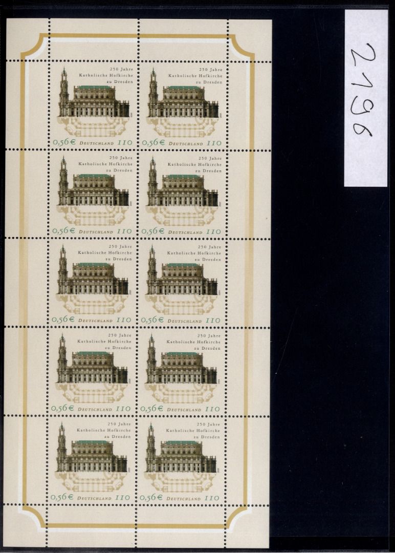 Bund, Michel Nr. 2196 Zehnerbogen postfrisch - Katholische Hofkirche
