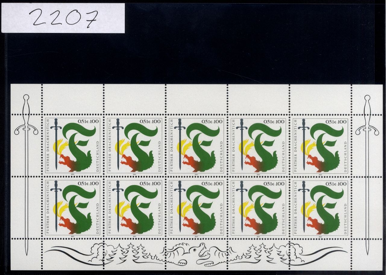 Bund, Michel Nr. 2207 Zehnerbogen postfrisch - Drachenstich