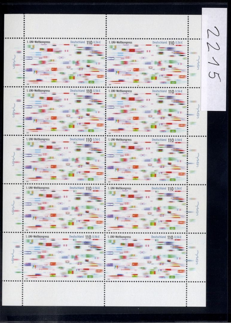 Bund, Michel Nr. 2215 Zehnerbogen postfrisch - Weltkongress der UNI