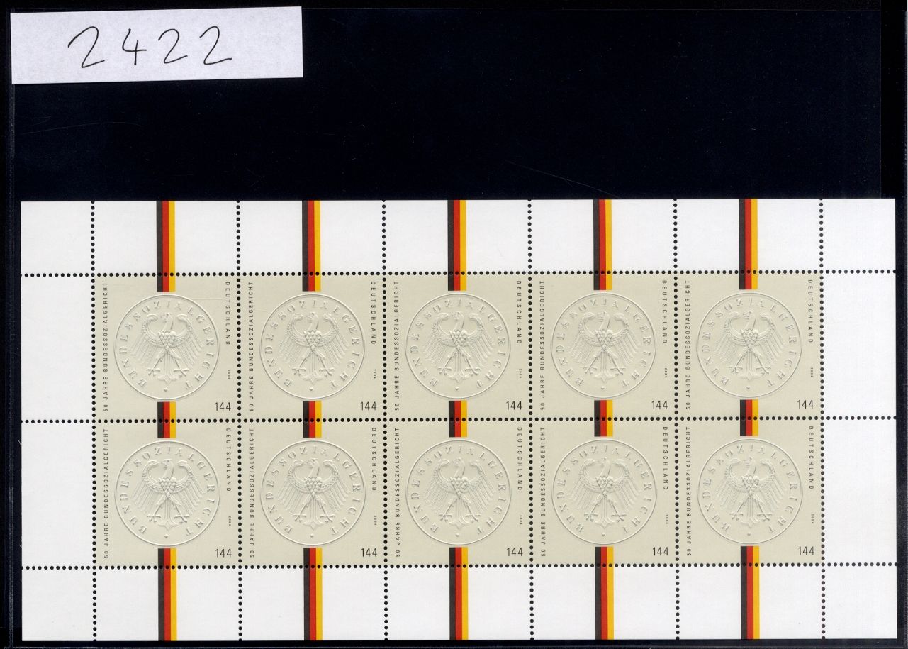 Bund, Michel Nr. 2422 Zehnerbogen postfrisch - Bundessozialgericht
