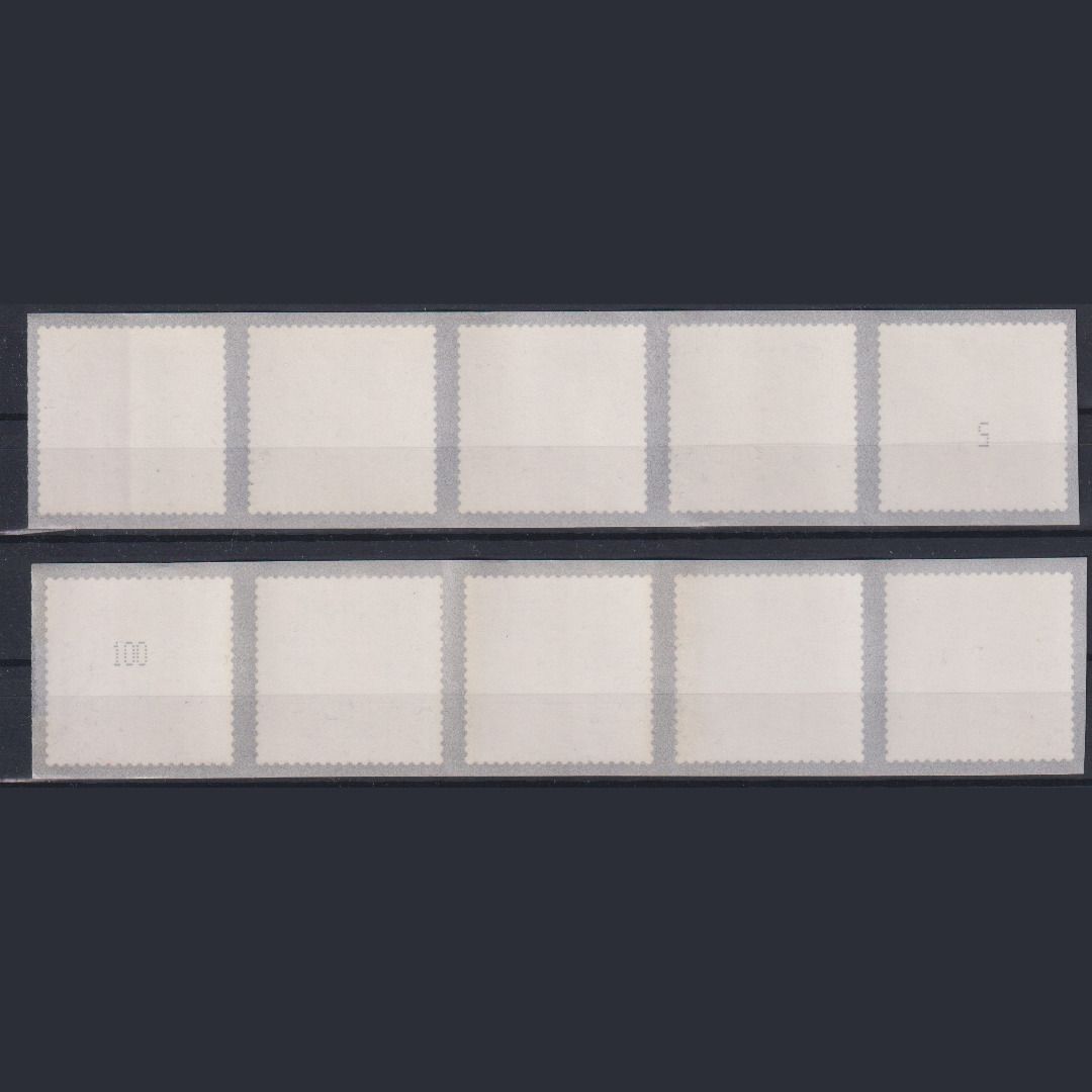 Rollenanfang und Rollenende jeweils im Fünferstreifen aus 100er-Rolle in eiwnadfrei postfrischer Erhaltung.