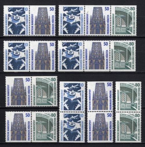 Alle 6 möglichen Zusammendrucke aus Markenheftchen 25, Heftchenblatt 30 in einwandfrei postfrischer Erhaltung.