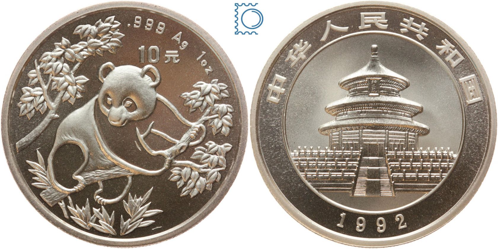CHINA 1992 - 10 Yuan - Panda - 1 Unze Silber - stempelglanz