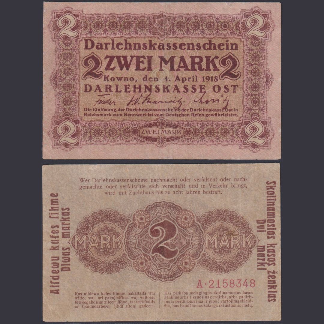Darlehnskasse Ost Kowno 2 Mark EWK-42 Ro.4665 P#R129 - Besatzungsausgaben 1. WK