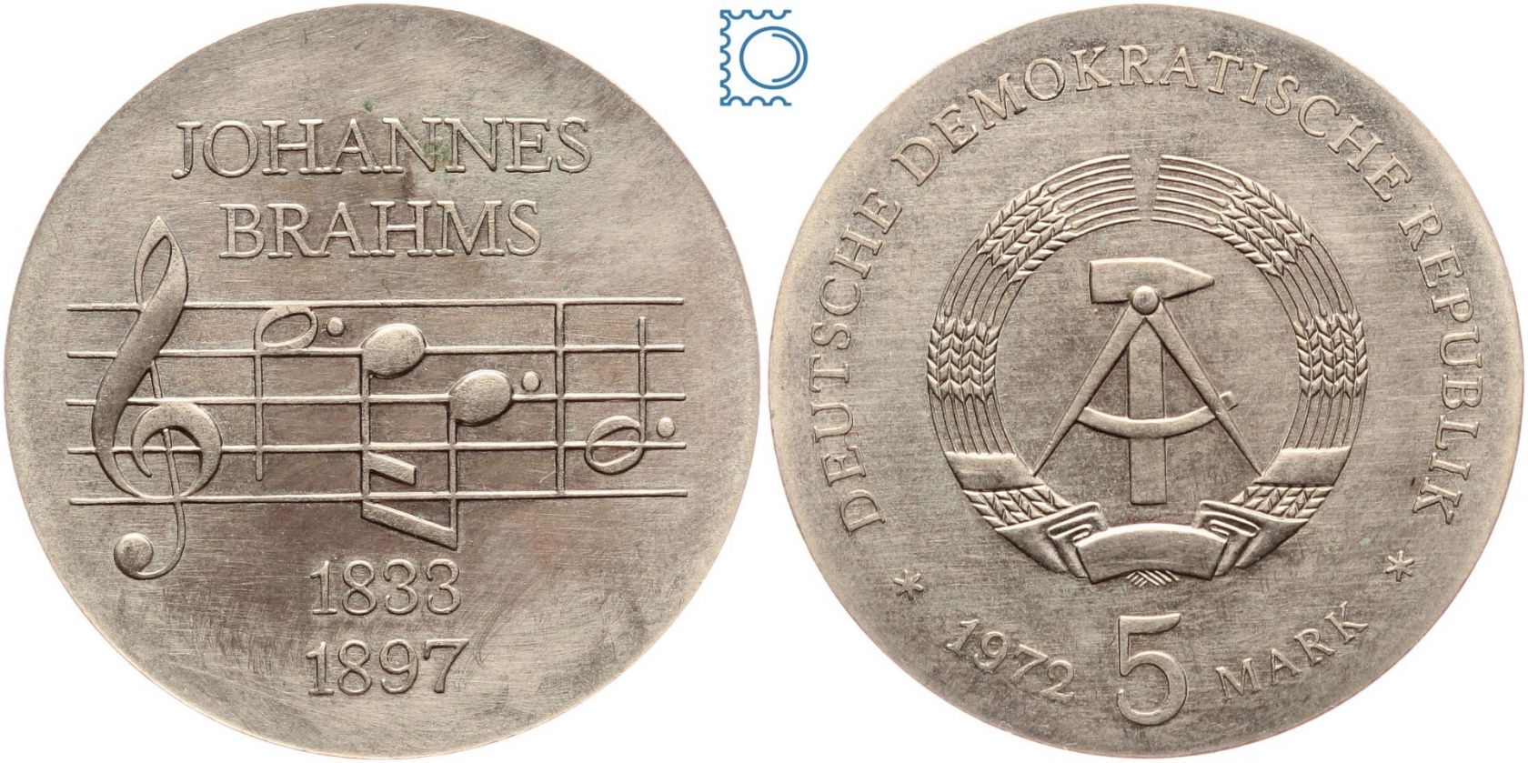 DDR 5 Mark 1972 - Johannes Brahms - stempelglanz - J.1540