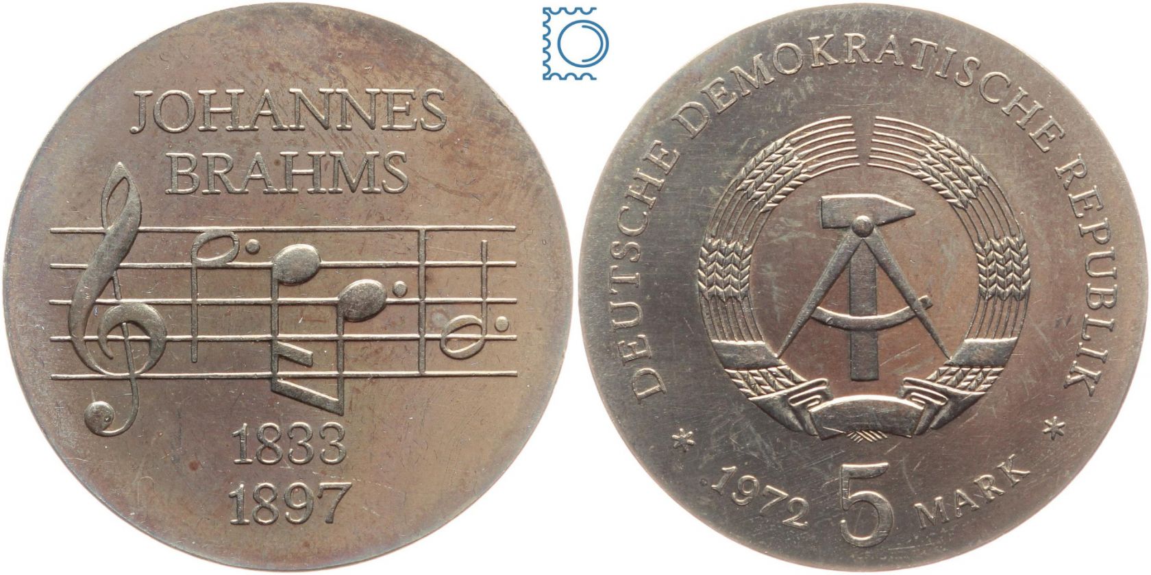 DDR 5 Mark 1972 - Johannes Brahms - stempelglanz - J.1540