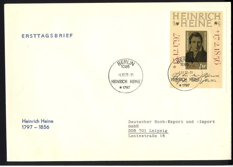 DDR, Block 37 FDC - Heinrich Heine - Großumschlag (Buchexport)