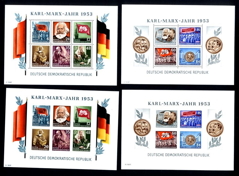 DDR Block 8A, 8B, 9A, 9B postfrisch - alle 4 Marx-Blocks