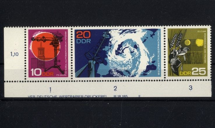 DDR, MiNr. 1343-1345 Dreierstreifen DV II postfrisch - Druckvermerk
