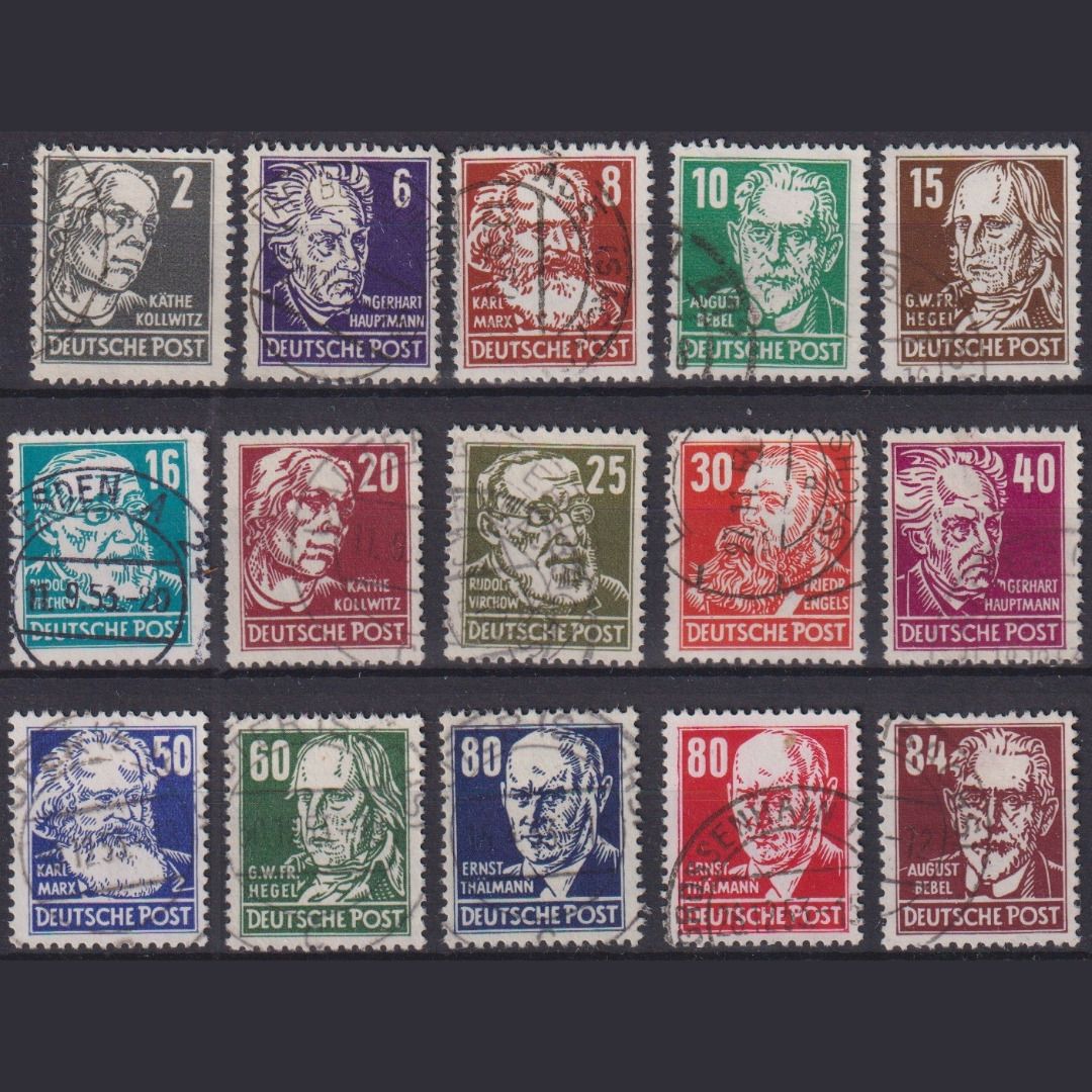 DDR MiNr. 327-341 gestempelt, Köpfe / Persönlichkeiten komplett