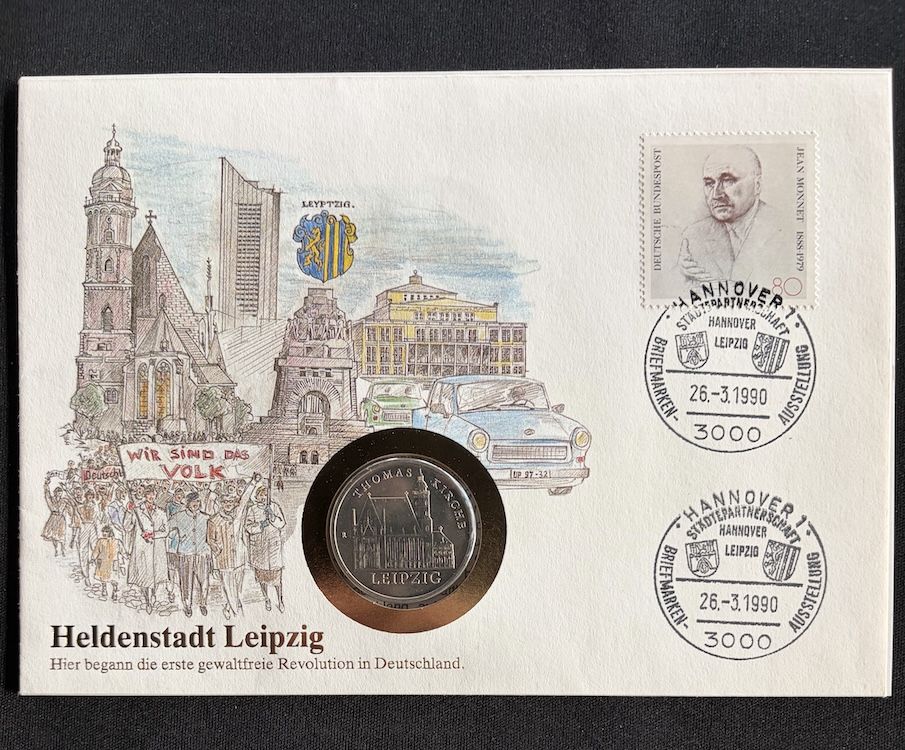 DDR Numisbrief 5 Mark 1984 Thomaskirche | HeldenstadtLeipzig | Worbes 98