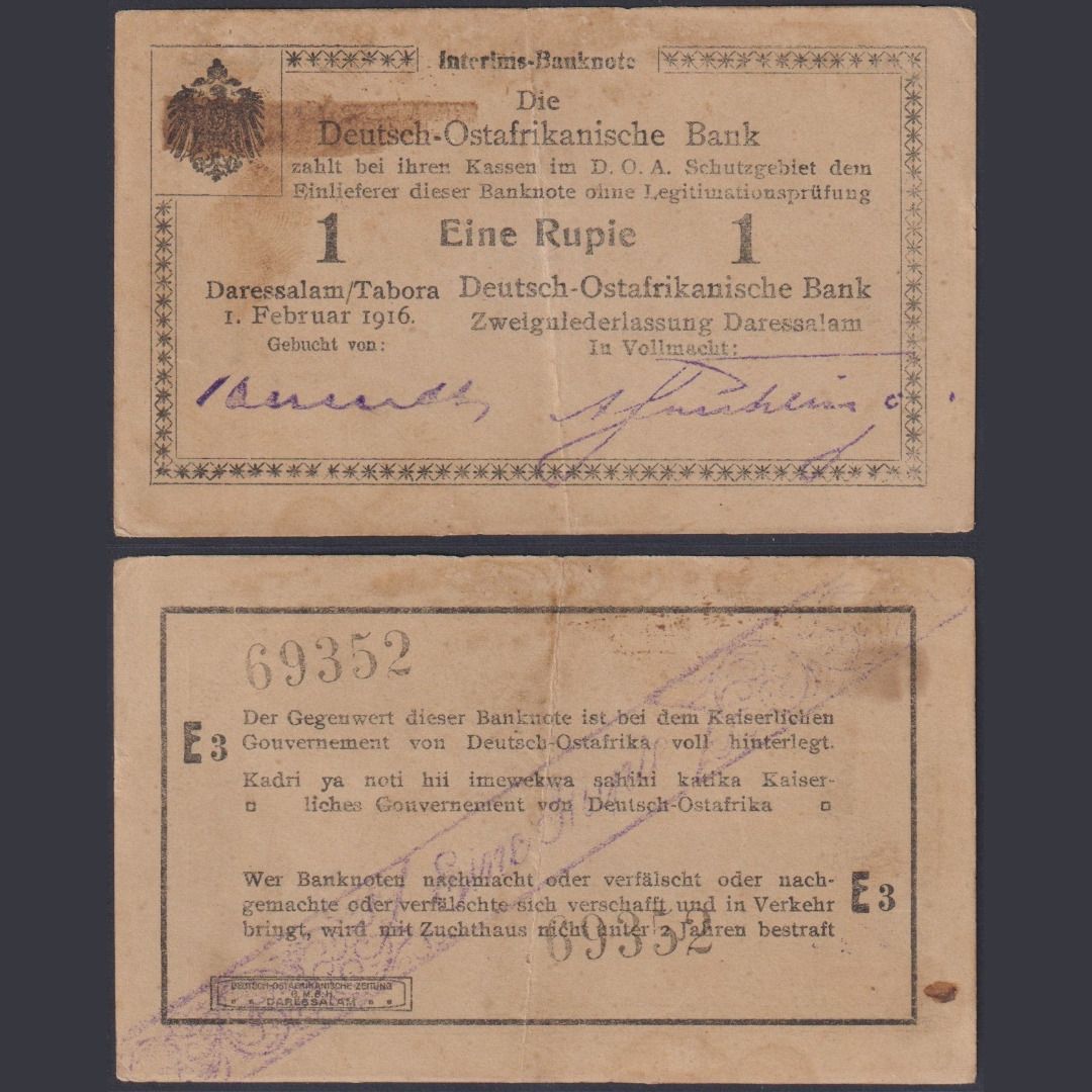 Deutsch-Ostafrika 1 Rupie DOA-30a Ro.928y P#19 Kolonien Kriegssausgaben