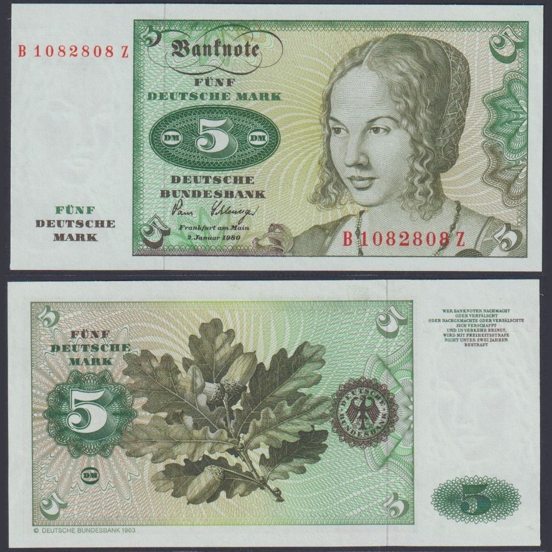 Deutsche Bundesbank 5 DM BRD-29a Ro.285a P#30b B/Z 1980 Bundesrepublik