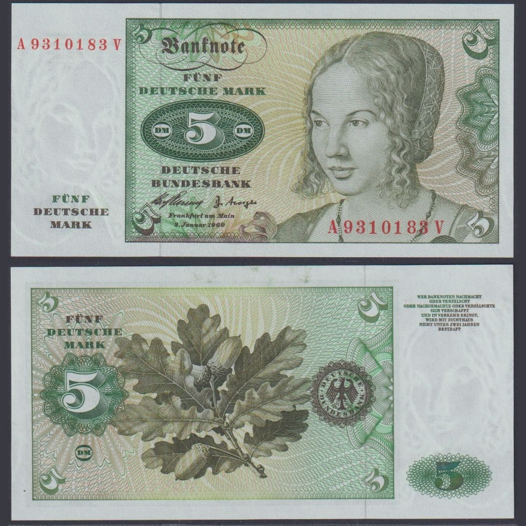 Deutsche Bundesbank 5 DM BRD-6e Ro.262e P#18 A/V 1960 Bundesrepublik