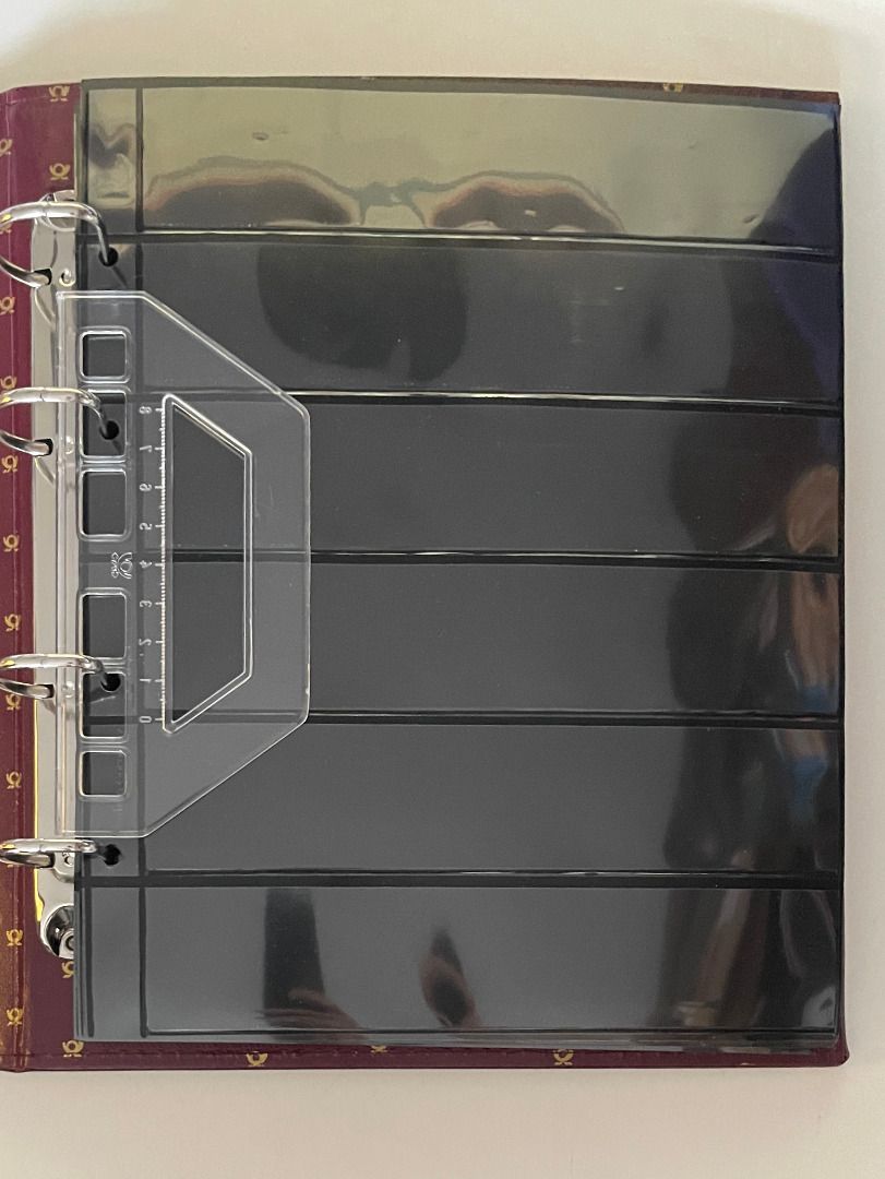 Ringbinder (4 Ring-Mechanik)m it 20 schwarzen Einsteckseiten mit 6 Streifen.